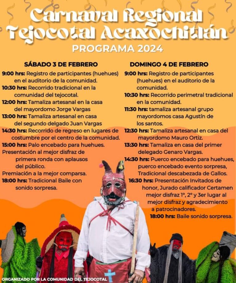 Diviértete en este apasionante carnaval regional, el 3 y 4 de febrero. Contarán con múltiples actividades, como tamaliza, baile con sonido sorpresa, recorridos y más.