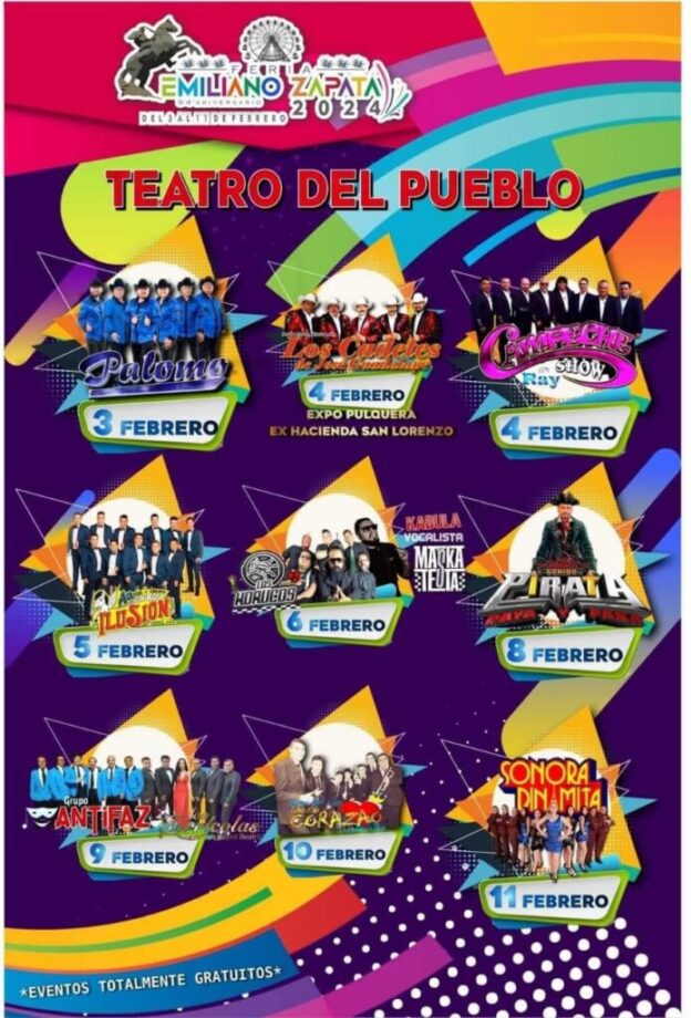 Del 3 al 11 de febrero, no te pierdas la esperada Feria Emiliano Zapata 2024, contará con una fabulosa selección para el Teatro del Pueblo. ¡A cantar y a bailar se ha dicho!