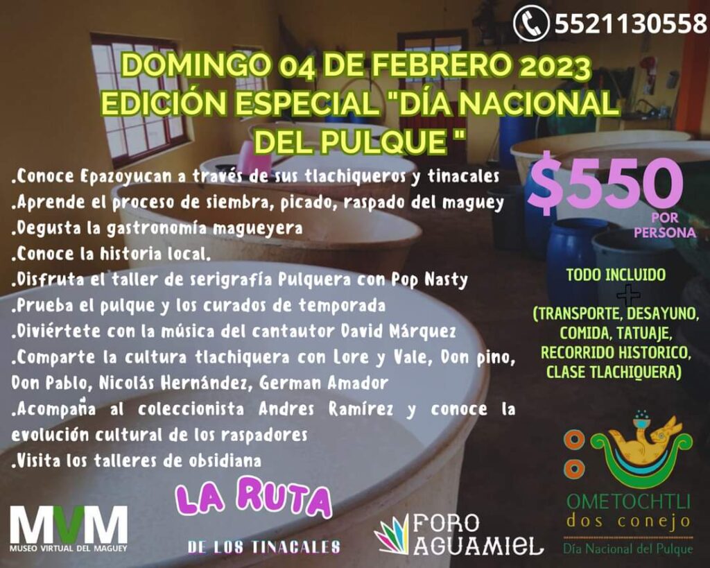 Disfruta de pulque natural, gastronomía, curados, ruta de los tinacales. ¡El plan perfecto para este domingo 4 de febrero!