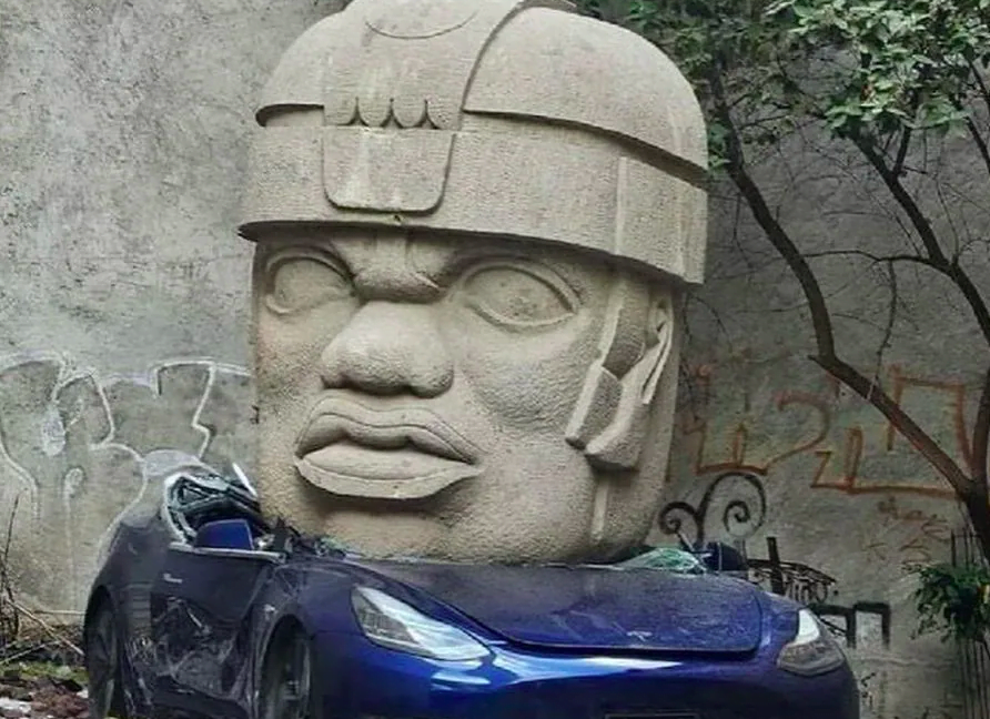 Aunque la colocación «accidental» de la pieza sobre un Tesla inicialmente desconcertó, forma parte de su serie «Neo Ta Memes», una ingeniosa reflexión sobre temas actuales. Respaldada por el Colectivo Colima 71 (@colima.71), la escultura de nueve toneladas, que muestra una cabeza olmeca aplastando un Tesla 3, ofrece una visión provocativa de la intersección entre pasado y presente.