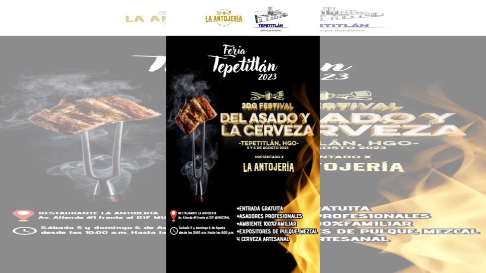 El Festival será dentro del restaurante La Antojería, reunirá asadores de Hidalgo y Estado de México, además de expositores de pulque, mezcal y cerveza artesanal hidalguense. Se ubica en avenida Allende, número 1, frente al DIF municipal.