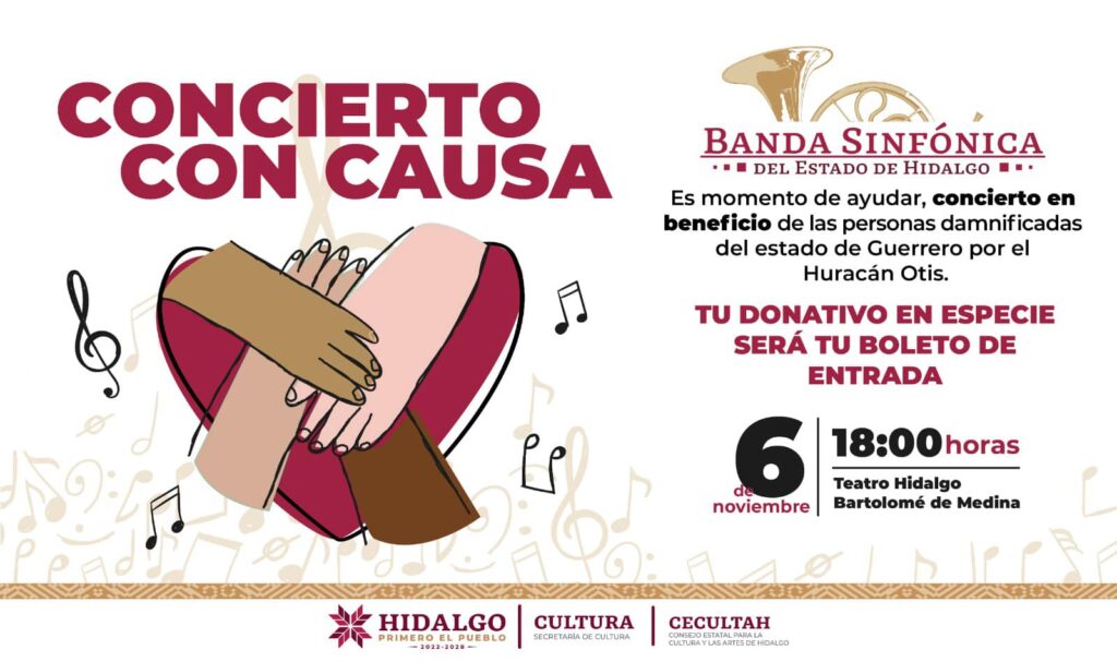 Con el objetivo de apoyar a la población damnificada de Acapulco, debido a los daños que causó el huracán Otis, la Banda Sinfónica del Estado de Hidalgo ofrecerá un concierto con causa el 6 de noviembre.