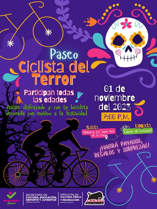Diviértete este Día de muertos con el paseo ciclista del terror en Tulancingo. Se partirá desde la biblioteca Sor Juana Inés De la Cruz, siguiendo por calle Morelos, posterior se dará vuelta en Benito Juárez, hasta llegar a Lázaro Cárdenas e incorporarse a la Calzada Cinco de Mayo, la meta será la Estación del Ferrocarril.