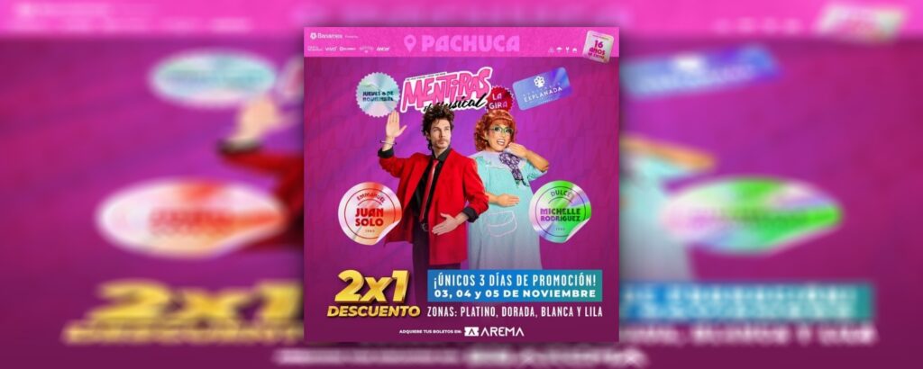 ✨ Vive una noche llena de música, glamour y recuerdos con “Mentiras, el musical”, y disfruta de la oferta cultural y turística que Pachuca tiene preparada para ti.