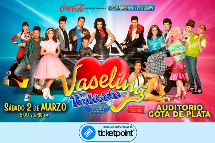Canta, baila y diviértete al ritmo del rock n’ roll con el musical Vaselina, protagonizado por los talentosos integrantes de Timbiriche. La obra estará bajo la producción de Erik Rubín y Alejandro Gou.