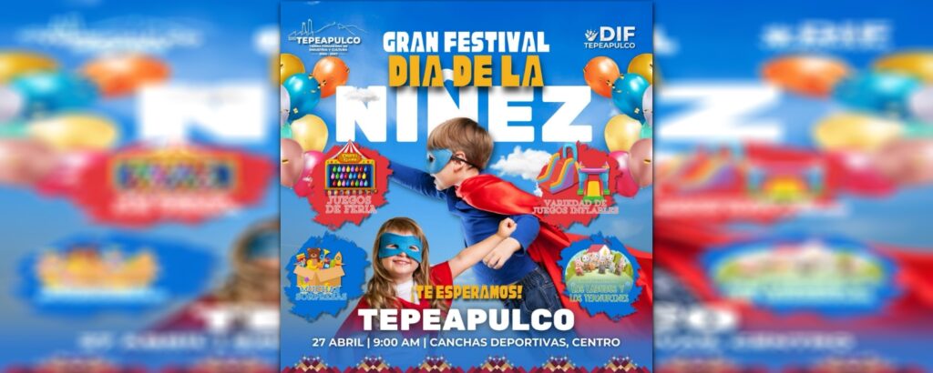 El Ayuntamiento de Tepeapulco y el DIF Municipal tienen el honor de invitarles al Gran Festival del Día de la Niñez, una celebración llena de alegría, sorpresas y momentos inolvidables para nuestras niñas y niños.