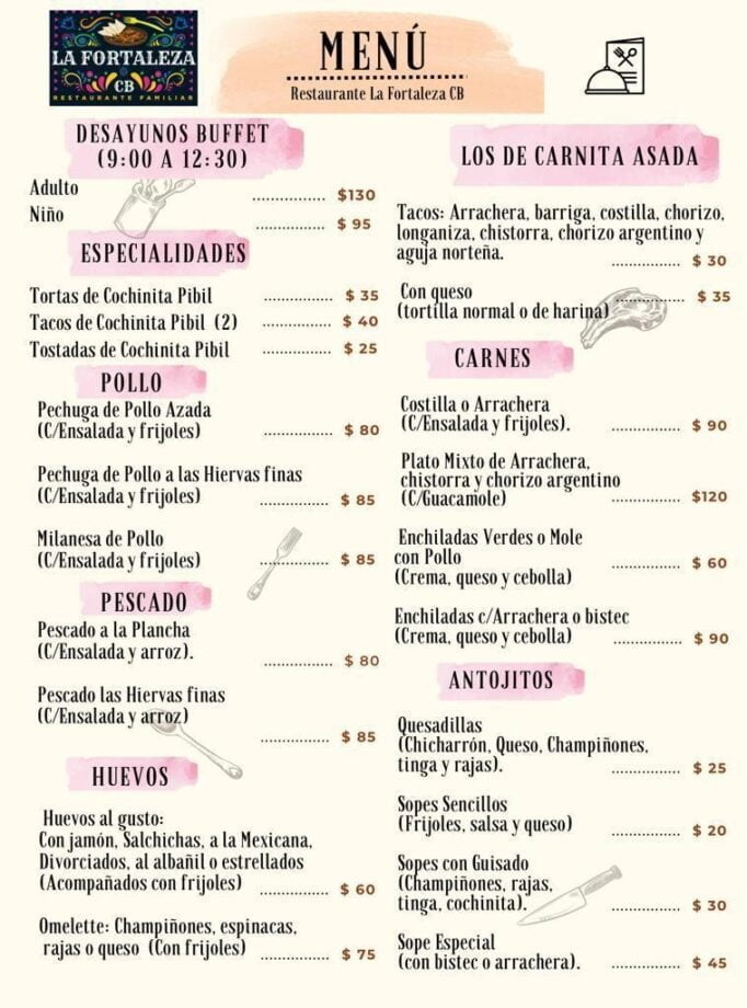 Su fuerte son los desayunos buffet, en los que podrás encontrar entradas como fruta, pan dulce, hot cakes, waffles, cereal con leche, etc. Y para amarrar, guisados como chilaquiles, bistec a la mexicana, chicharrón, salchichas al chipotle, pancita, huevo con jamón, papas con chorizo y más. Cuentan con café calientito, jugos y riquísimas aguas frescas. Su costo para adultos es de $130.00 MXN y para niños $95.00 MXN, y el horario es de 9 am a 12:30 pm.