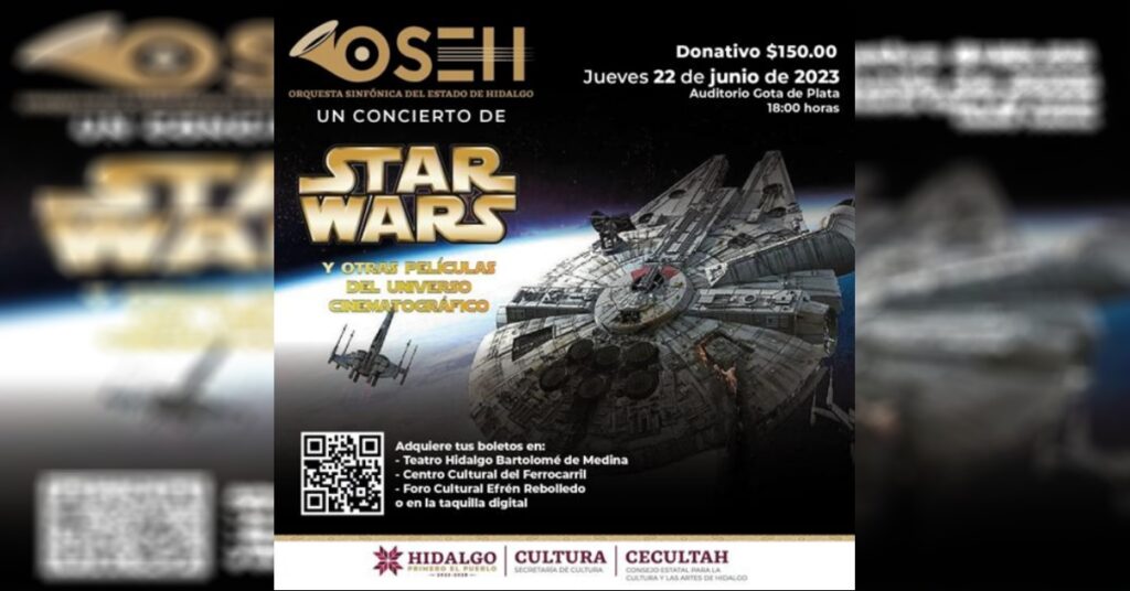 Agenda tu asistencia a este concierto galáctico y goza la música de Star Wars en vivo. ¡Un sueño para muchos! La Orquesta Sinfónica del Estado de Hidalgo será la encargada de consentir tus oídos.