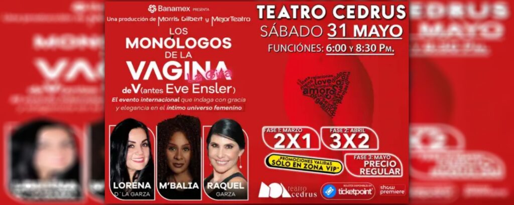 Venta de boletos en: https://ticketpoint.mx/evento/cedrus-los-monologos-de-la-vagina/
