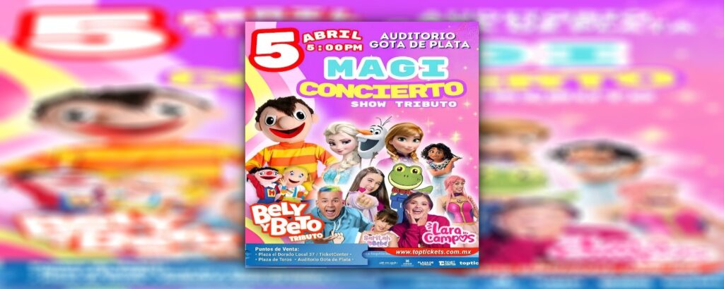 Prepárense para una aventura mágica en Pachuca. MAGICONCIERTO, un evento infantil que reunirá a los personajes favoritos del momento de los pequeños, un espectáculo lleno de música, baile y diversión.