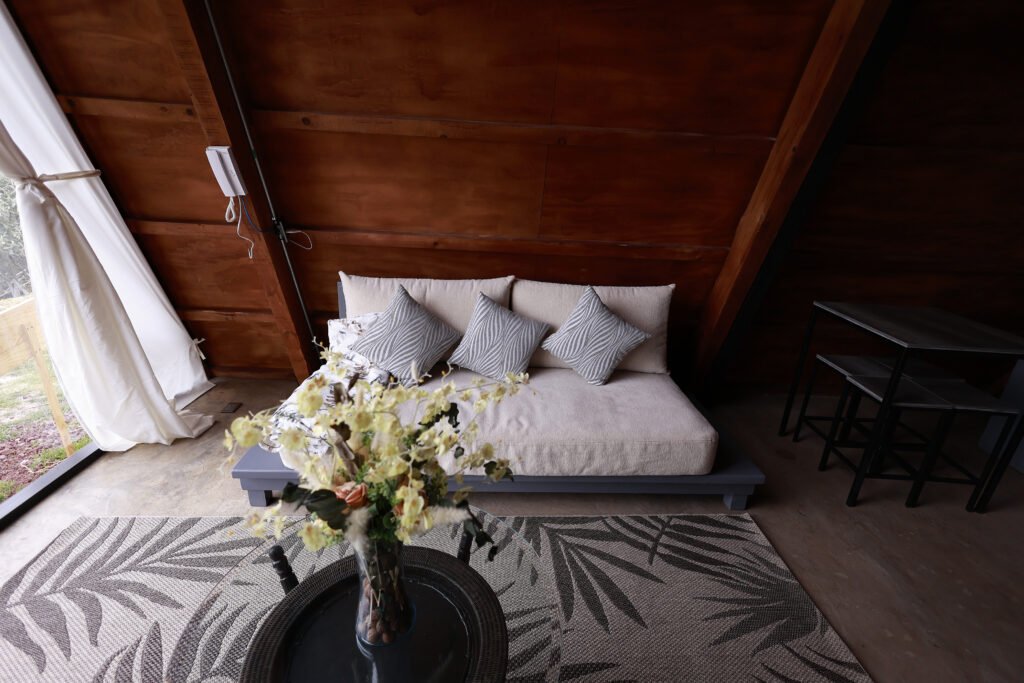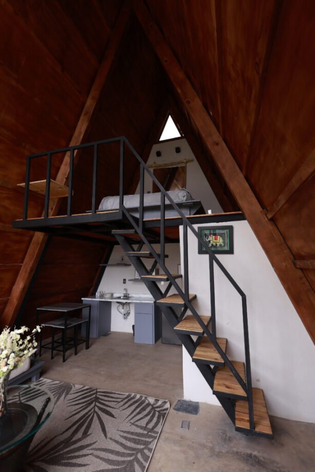 Cada cabaña tiene un nombre y tiene un diseño único, lo cual hace a este lugar más especial. Cuenta con un pequeño lago, un nido por si quieres conversar ahí con esa persona especial y, por supuesto, gigantescas áreas verdes.