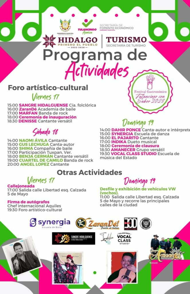 Prepara tu agenda para que vayas al festival gastronómico: “Tulancingo con Sabor 2023”. Se celebrará el 17, 18 y 19 de marzo de 10 am a 10 pm, ¡12 horas de puro sabor!. La cita será en el Jardín La Floresta Jardín La Floresta. A sólo 2 horas y 30 minutos aproximadamente de la CDMX.