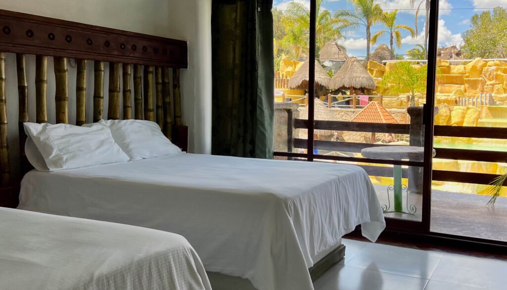 El balneario cuenta con 34 habitaciones dobles y triples, perfectas para descansar sin preocuparte por el regreso. ¿Qué tal si te quedas y disfrutas de sus famosos chilaquiles en la mañana? ¡Te encantará!