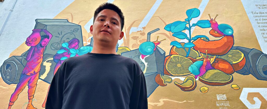 La obra que el artista presenta tiene como propósito generar reflexión sobre nuestro consumo cotidiano y sus efectos y explicó que su mural invita a la conciencia sobre los desechos que genera el consumo, con un mensaje que promueve la economía circular y la responsabilidad ambiental.