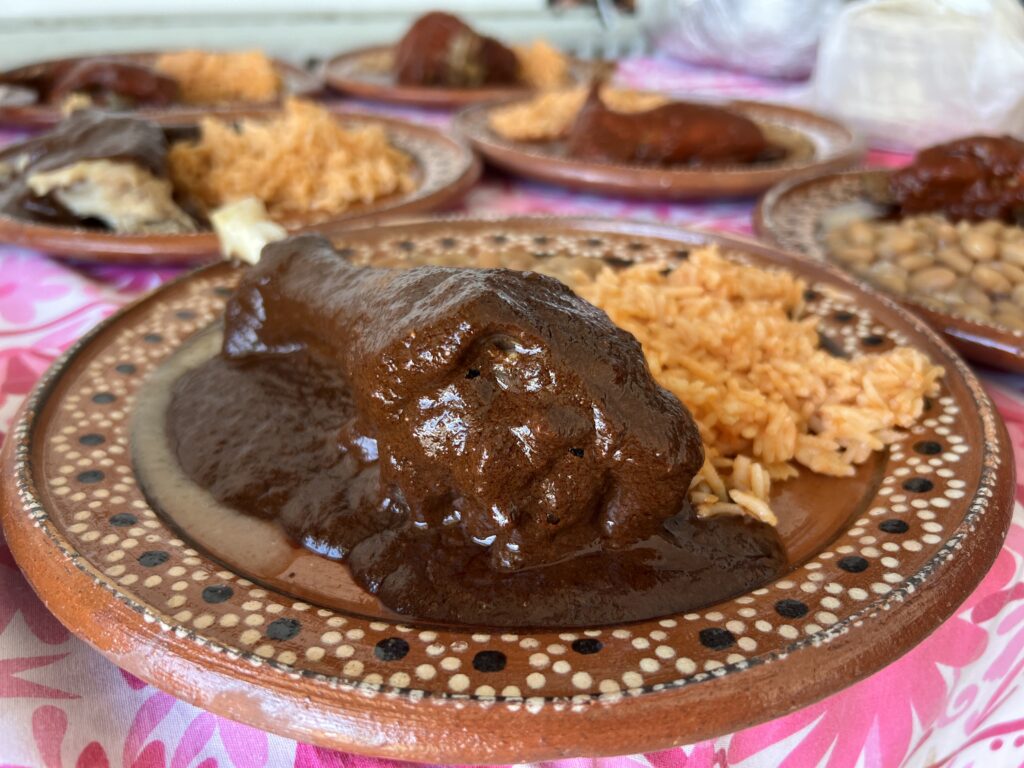 Muestra gastronómica con platillos típicos como guajolote en mole, conejo y gorditas.