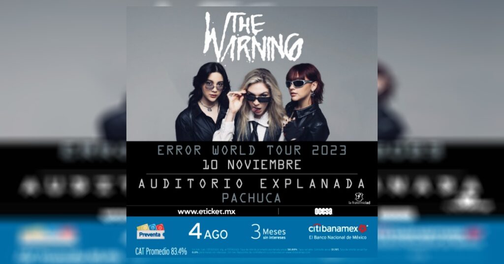 The Warning se presenta en el Auditorio Explanada Pachuca este viernes 10 de noviembre en punto de las 20:30 hrs. La banda de rock proveniente de Monterrey, Nuevo León fue formada en 2013 por las hermanas Villarreal Vélez: Daniela, Paulina y Alejandra,
