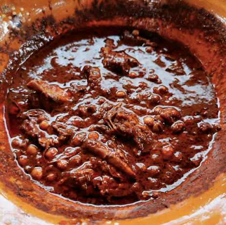 Esta delicia es un caldo condimentado con hoja de aguacate o epazote, adobado con masa de maíz y chiles, como el guajillo y ancho. Parecido al mole, puede llevar carne, frijoles, hongos, etc. Imagínate este adobo acompañado de ensalada de manzana… ¡chulada!