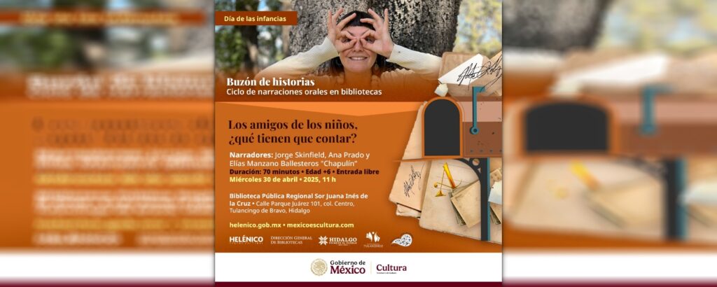 Niñas y niños de Hidalgo vivirán una fiesta de cuentos, juegos y música este 30 de abril, con el arranque en Tulancingo de la celebración nacional del Día de las Infancias a través del programa “Buzón de historias”, impulsado por la Secretaría de Cultura federal, el Centro Cultural Helénico, la Dirección General de Bibliotecas y el programa nacional comunitario Por la Vida, Fiesta de Cuentos.